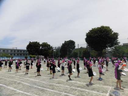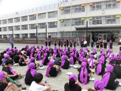 運動会に向けて1か月半の間、毎日たくさん練習をしていきたエイサーを、最後にもう一度全員で心をこめて踊りました。エイサーを踊った後には、練習の中心となって活躍してきた実行委員からの一言に、学年全員がまとまる場面もありました。心を一つに踊るという目標を達成できました。