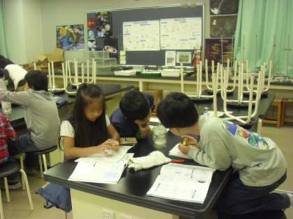 温度計や試験管の変化を真剣に観察しています。