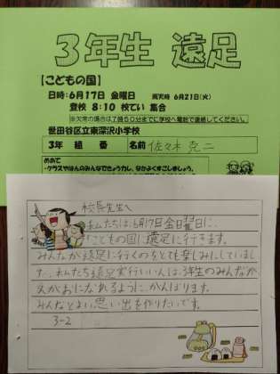 2日前の放課後に遠足実行委員2人がしおりとメッセージを校長室に届てくれました。