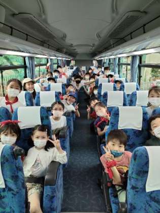 「遠足。ドキドキする!」「めっちゃ楽しみ!」…一人一人の思いを乗せてバスが出発しました。