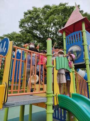 この写真は、めいろとなかよしひろばすくすくアイランドで仲間と仲良く遊ぶ子どもたち!!