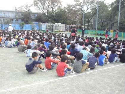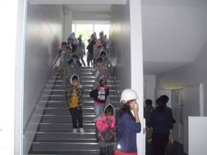 金曜日の雨で延期になった避難訓練です。主事室から火災が発生した想定で行いました。主事室から出火で中央階段が使えませんでしたが、子どもたちは先生方の誘導で「おかしも」の約束を守り校庭へ避難しました。100点満点中99点の出来です。しかし、避難訓練は100点満点でなければなりません。次回は100点がとれるようにがんばりましょう。