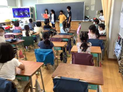 6年生が中心となり、各班で自己紹介や短い遊びを行いました。