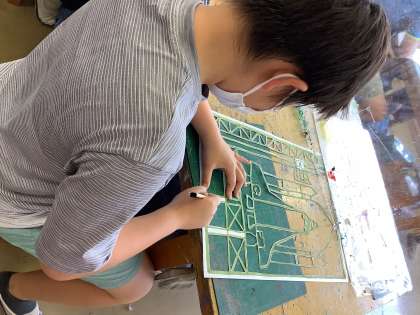 6年生の図工では、「マイ・ステンシル」というステンシル版画の題材に取り組んでいます。
