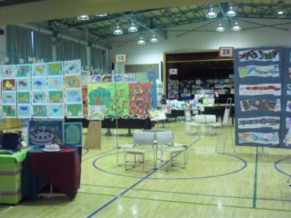 いよいよ今日、明日は展覧会です。東深沢小学校では、平成14年以来の9年ぶりの展覧会になります。子どもたちの生き生きとした作品が体育館に飾ってあります。今日、明日の体育館は、「東深沢美術館」に変身しました。