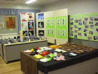 体育館棟1階の視聴覚室には、地域・保護者の方々、東深沢中学校の生徒、先生方の作品が展示してあります。