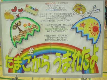 1年生平面作品「たまごからうまれたよ」の写真です。