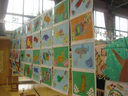 今日から展覧会が始まりました。子どもたちの心のこもった作品に、ご覧になったお客様から「本当に美術館ですね」「子どもたちはすごい力をもっていますね」と言葉をかけられ、とても嬉しくなりました。