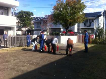 玉川消防署新町出張所の方々や、消防団の皆様、深沢まちづくりセンターの皆様の協力で訓練を行いました。町会の倉庫にも非常時に備えた物品がありました。