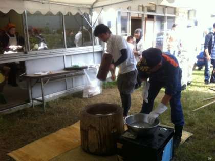 今日は、深友会(町会)の防災訓練と餅つきです。