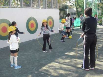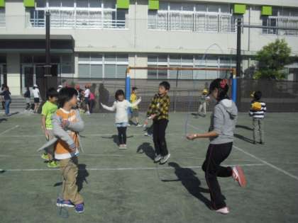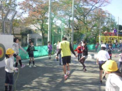 先生方も子どもたちと一緒にとんだり、子どもたちに教えたりしています。