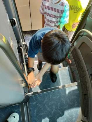 バスに乗車する前は、各自で手指消毒をします。