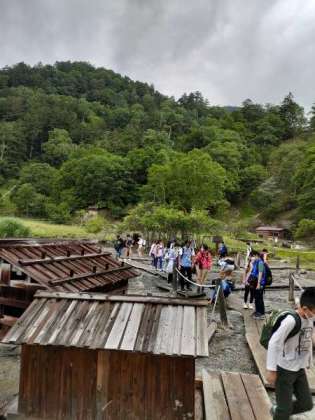 あまり嗅いだ経験のない硫黄のかおりに… 子どもたちは微妙な反応です。