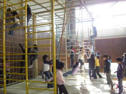 校庭のドングリ山での遊びやドッジボール、体育館でのウォールジム遊び、教室でのさまざまなゲームなど、附属のみんなが計画を立ててくれた楽しい遊びを満喫しました。あちこちで笑顔と歓声があふれ、あっという間に時間が過ぎていきました。