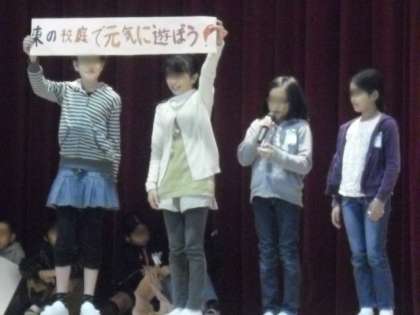 「広場」では、飼育委員会と保健委員会の発表が行われました。