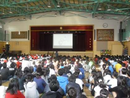 今朝はユニセフ集会です。計画委員からユニセフについての話とVTRを見ました。