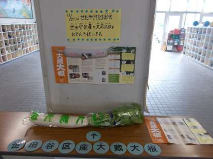 本日の給食で、せたがやそだちの「大蔵大根」をおでんで使用します。