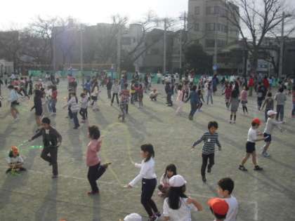 今朝は、運動委員会の5,6年生の企画による「なわとび集会」です。校庭になわとびのコーナーを作って友達と遊びます。運動委員や6年生がリーダーとなって後輩に教えてたりコーナーの運営をしたりします。朝から体を動かすと気持ちがいいです。