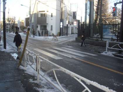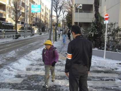 校舎の前の道路はすっかりきれいになりました。子どもたちが安全に登校できるように先生方も通学路に出て声をかけます。ひんやりした空気で気持ちが引き締まり、先生方の子どもを思う気持ちに心が温まります。