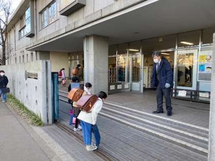 風が強くて寒い朝でしたが、正門では心のこもった元気なあいさつが聞こえてきました。