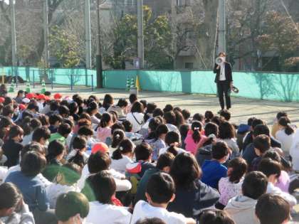 1月の避難訓練は、実施日を児童に知らせず、予告なしで行いました。今までの訓練の成果を生かし、不慮の事態に対応できるようにすることをねらいとしています。訓練は、「関東一円に強い地震が発生、続いて理科室より火災が発生したため、校庭に避難する」という想定で行いました。地震発生の放送が流れると、児童は一瞬驚いた様子でしたが、すぐに机の下にもぐって避難行動をとり、その後は「理科室より火災が発生」という放送で、校庭に素早く避難をすることができました。災害はいつやってくるか分かりません。いつでも命を守る行動がとれるよう、今回の訓練を生かしていきたいと思います。