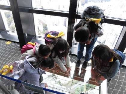 透けた床に恐る恐る踏み入り、度胸試しをしていました。