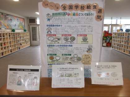 本日から1月30日まで、全国学校給食週間と絡め、給食の歴史の資料を掲示及び展示しています。場所は1階の玄関前です。せひご覧ください。