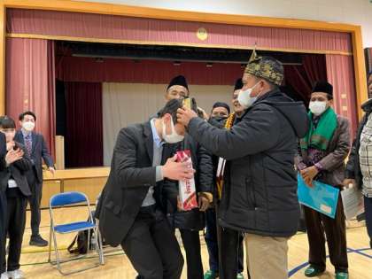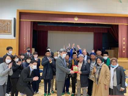 インドネシアの先生方が学校に記念品をくださいました。職員室前の廊下に飾りますので、ぜひご覧ください。