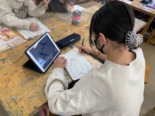 考えたデザインを木の板に写し、自分で描いた線に沿って切りました。