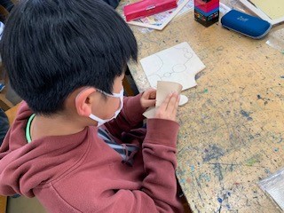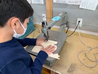 小学校で初めて、電動糸のこを使った作品作りに挑戦しています。