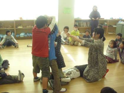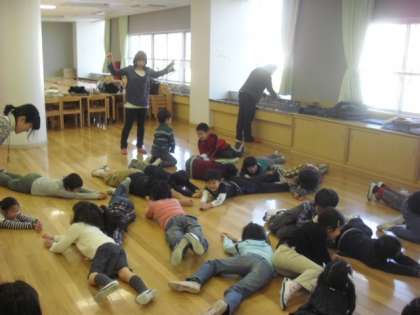 子どもたちも喜んで体を動かし、思いっ切り表現しました。教室内はとっても暖かい雰囲気です。劇団員のみなさまありがとうございました。