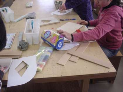 図工で本立てを作っています。