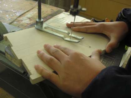 自分のお気に入りのマークを電動のこぎりで上手にくりぬきます。