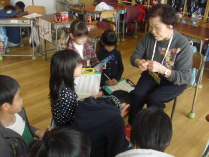 その後、学級ごとに分かれての交流会が始まりました。昔遊びやマジック、なぞなぞ、音読など、学級によって出し物は異なりましたが、どの学級の子どもたちも「来てくださった方に喜んでいただけるように」ということを、一人一人が真剣に考えました。その努力が、すずかけサロンの方々にも伝わり、みなさん笑顔で学校を後にしました。