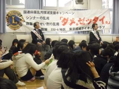 6校時に、東京成城ライオンズクラブの方々にいらしていただき、「薬物乱用防止教室 〜ダメ。ゼッタイ。〜」を行いました。