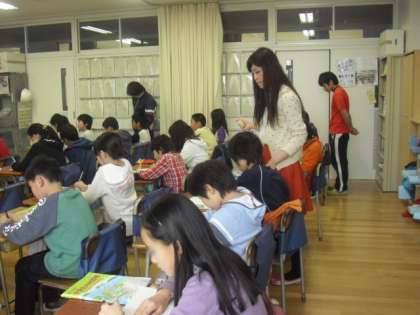 4年生の百瀬先生の授業です。檜原村の学習です。授業の始まりは、「払沢の滝」が凍っている写真から入りました。「この写真はどこでしょう」の問いに、「北海道」「青森」などなど北の地方の名前があがりました。先生から東京都の檜原村であると教わると子どもたちはびっくりです。一人一人がこれからの学習課題を見つける1時間でした。世田谷との違いに驚いた1時間でした。