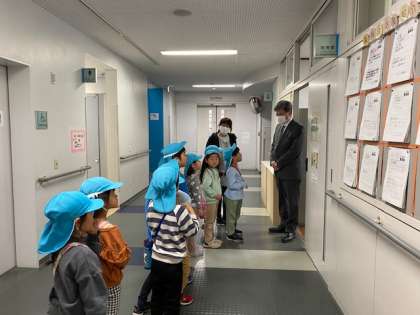 今週は、学び舎の連携園である、めぐみ保育園の年長組さんが学校見学に来ました。