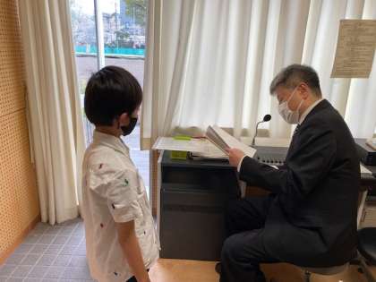 学年代表児童が、校長先生から修了証をいただきました。校長先生からの春休みの宿題は、「4/6に元気な笑顔をもってくること」です。