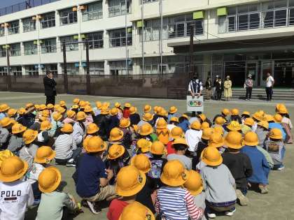 今日は、玉川警察署の方々にお越しいただき交通安全教室が行われました。