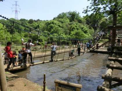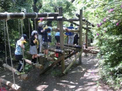 自然豊かな場所に、様々な種類のアスレチックがあり、子どもたちは大いに楽しむことができました。