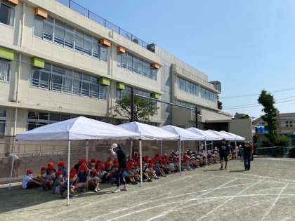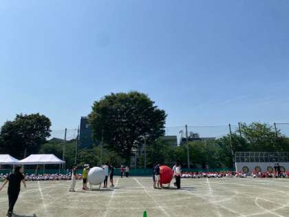 閉会式の流れを確かめてから、全校競技の大玉おくりと応援の練習をしました。練習にも力が入ります。