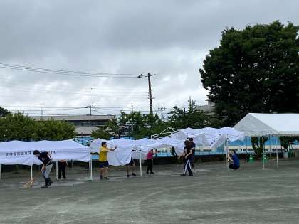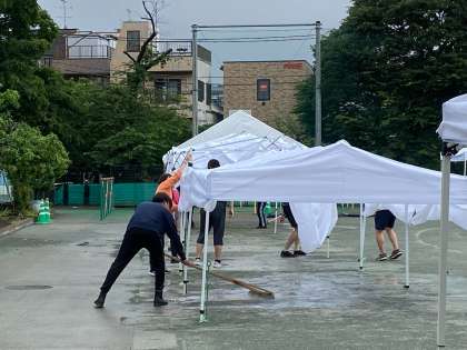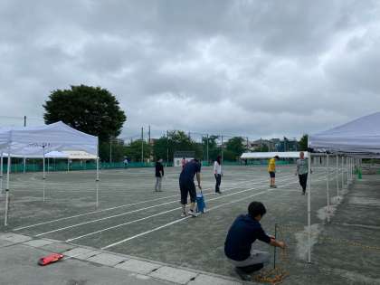 雨で消えてしまった線や、ぬかるんでしまった校庭を明日のために整備し直しました。