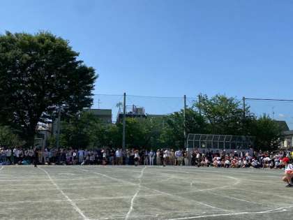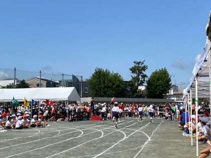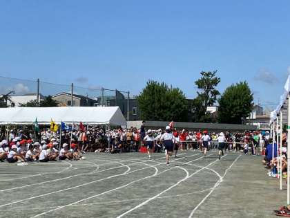 一生懸命走る5年生に、他の学年から大きな声援が送られています。