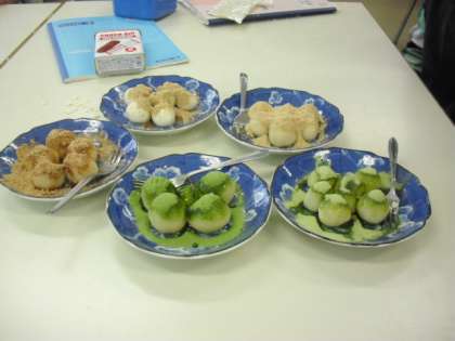 5年生の家庭科で、白玉だんごを作りました。おいしそうです。