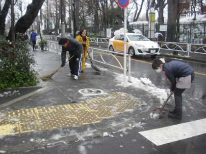 子どもたちの下校が完了した後は、明日の登校に備えて、先生・主事さんたちで雪かきです。みんな一生懸命に働いたのでこんなにきれいになりました。こんな仕事も「チームひがし」は笑顔でします。ありがとうございます。