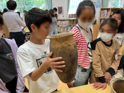 世田谷区の学芸員の方が、縄文時代や古墳時代の土器を持ってきてくれました。
