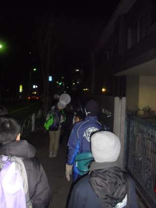 おやじの会主催の「6年生追い出しイベント」恒例の「ナイトウォーク」が始まりました。昨日(3日)23:00に学校に集合し説明を聞いて23:30に羽田に向けて出発しました。今年は6年生34名が参加です。おやじの会のメンバーやOB、医師も同行します。サポートカーも仕立てて毎年、万全の体制で行われています。小学校生活の思い出、そして自分への「挑戦」の往復32kmの旅です。おやじの会の皆さん子どもたちのために本当にありがとうございます。