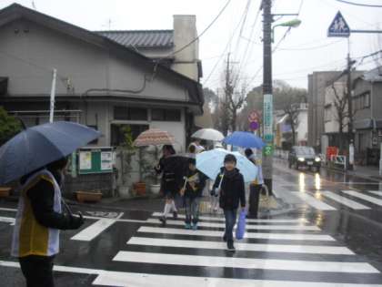 毎月第1月曜日は、あいさつ運動です。今朝は冷たい雨でしたが、街角には地域の方々や保護者の皆さんが立って、「おはようございます」のあいさつを交わしてくださいます。