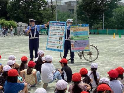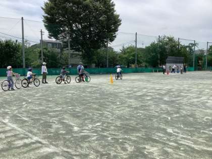 5日に自転車教室を行いました。玉川警察署の方が来校し、自転車の安全な乗り方や交通ルールをお話ししてくださいました。その後、校庭に設定した交差点や車の脇を通るコースを、実際に自転車に乗って運転してみることで、学習したことを確認しました。校外委員の皆さま、当日お手伝いくださいました保護者の皆さま、ありがとうございました。