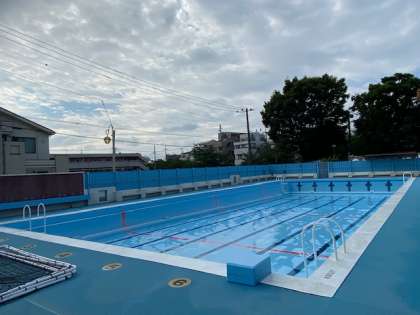 6/19(月)から水泳指導が始まります。今週、プールをきれいに清掃し、きれいな水が入りました。